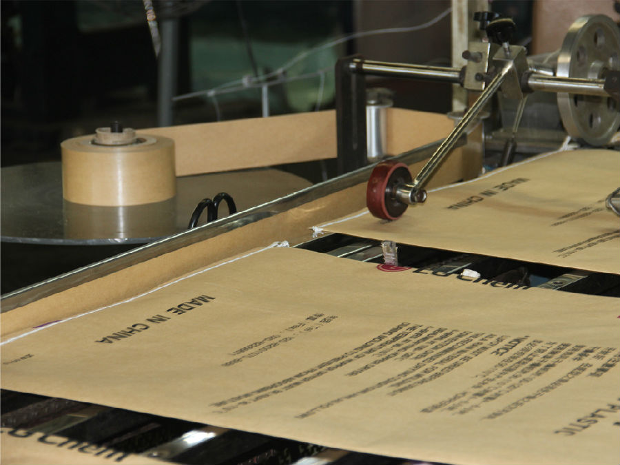 纸塑复合袋是由编织布、复合层、牛皮纸三部分构成,经过印刷、成筒制袋、热切、缝纫、底部封底等工序获得的一种包装产品,其编织层是利用聚乙烯或聚丙烯原料通过熔融,平模头挤出片膜,经过定向取向,获得优异的抗拉伸性能,良好的承重能力;复合层使用聚乙烯及聚丙烯(或其他杂质)的混合物,经过熔融,平模头挤出流延膜,在高温未冷却的时候粘接在编织布层及牛皮纸,以达到防潮、防尘等作用。编织布的结构是在高温烘箱中制造出来的,所以此产品可耐热灌装;牛皮纸为编织袋产品消除了其静电吸附能力,并起到了阻光性能,纸塑复合袋产品广泛使用在塑料改性,矿业,合成橡胶等领域。