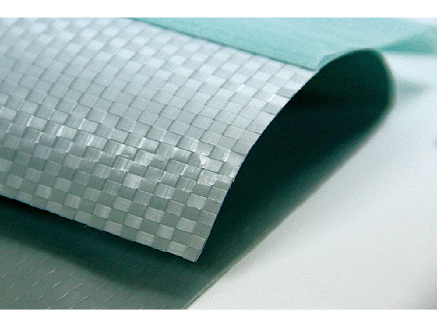 淋膜编织布是由编织布、单层或双层复合层部分构成,其幅宽可达4.2m,经过印刷、复卷、包装等工序获得的一种包装产品,其编织层是利用聚乙烯或聚丙烯原料通过熔融,平模头挤出片膜,经过定向取向,获得优异的抗拉伸性能,良好的承重能力;复合层使用聚乙烯及聚丙烯(或其他杂质)的混合物,经过熔融,平模头挤出流延膜,在高温未冷却的时候粘接在编织布层,以达到防潮、抗老化、防锈、透气等性能。
